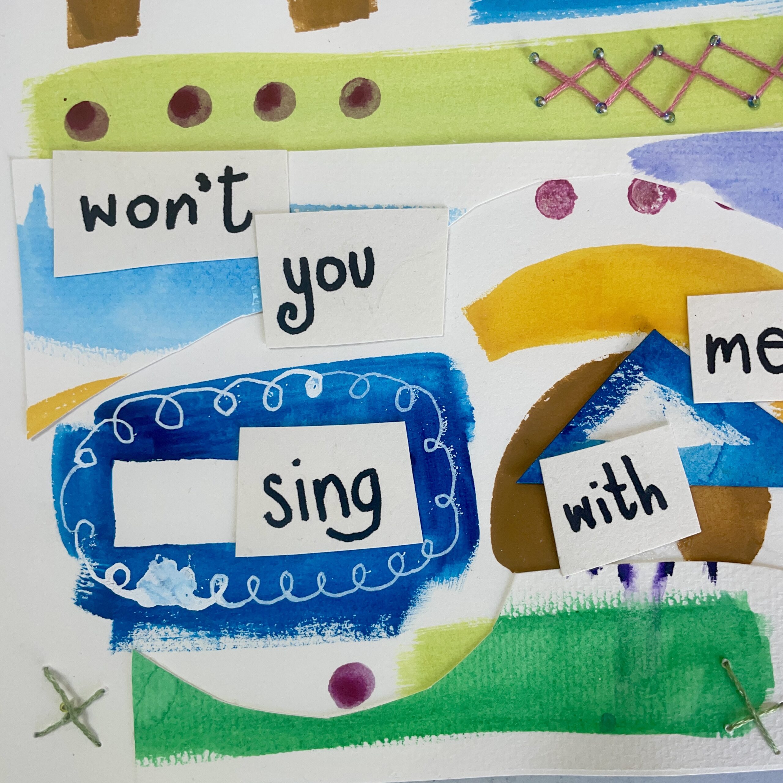 Original mixed-media lyric piece by Sharon Glassman, songwriter of Five Foot Betty.